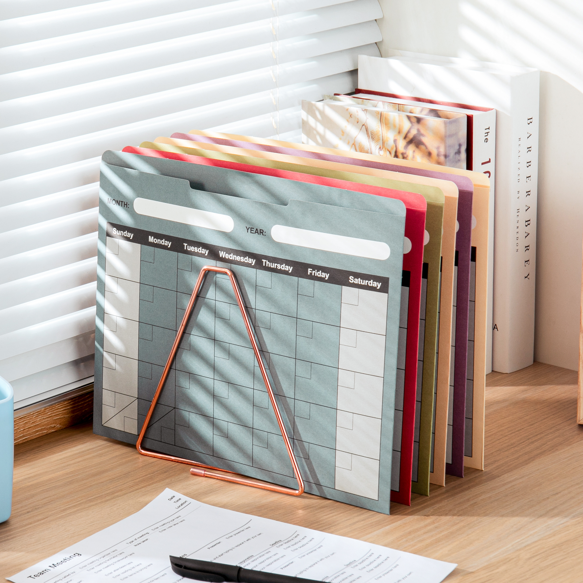 Y YOMA 6 Pack Rose Gold Hanging File Folders with Pocket Letter Size Decorative File Folder Cute Pretty Hanging Folder for Office Home School with 1/5-Cut Adjustable Tabs, Inner Storage Pockets