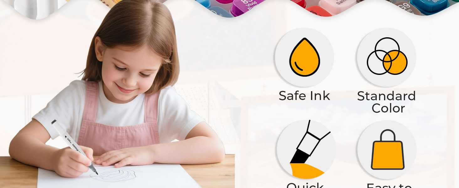 Quick Access - The color-coded caps provide a clear visual reference, allowing you to quickly find the right color. The improved pen cap design helps minimize ink evaporation, ensuring a longer lifespan for each marker