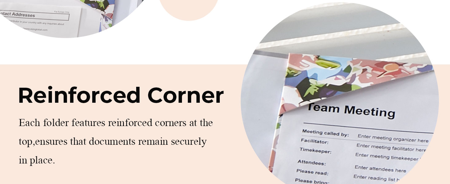 Efficient Storage - Our binder folders feature two spacious interior pockets, perfect for documents, papers, business cards, brochures, and more. The reinforced corners at the top of the pocket folders ensures that documents remain securely in place