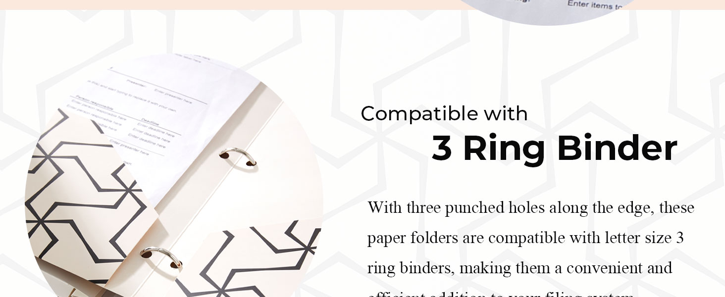 Suitable for Binders - With three punched holes along the edge, these paper folders are compatible with letter size 3-ring binders, making them a convenient and efficient addition to your filing system