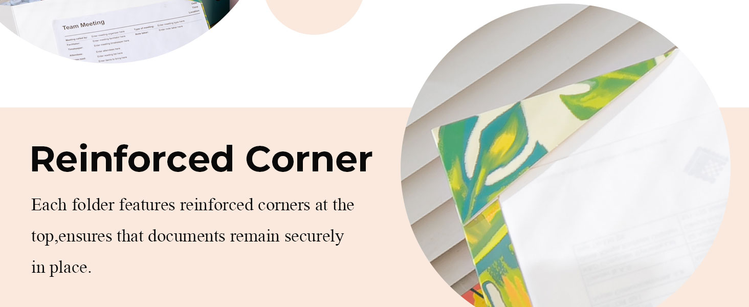 Efficient Storage - Our binder folders feature two spacious interior pockets, perfect for documents, papers, business cards, brochures, and more. The reinforced corners at the top of the pocket folders ensures that documents remain securely in place
