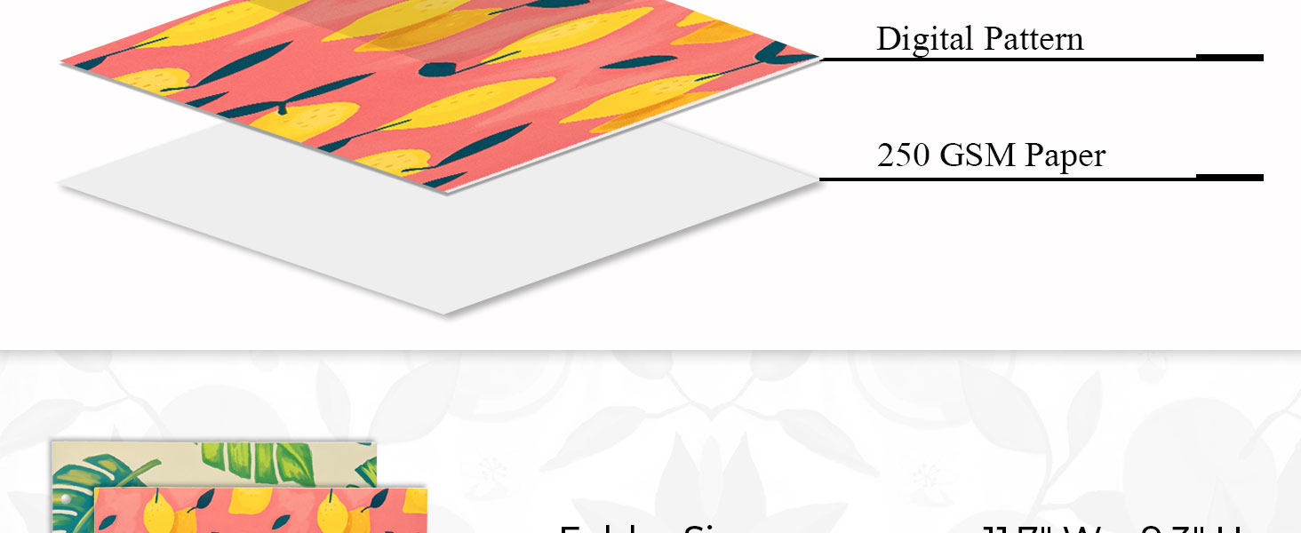 Folder Dimension - The school folders are made of 250 GSM paper, size is 11.7" W x 9.3" H. You will receive 6 project folders (3 Tropical Fruit x 2). For further problem, please feel free to contact us
