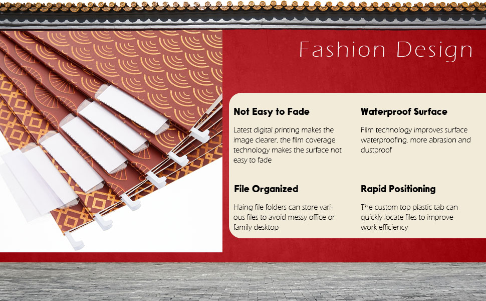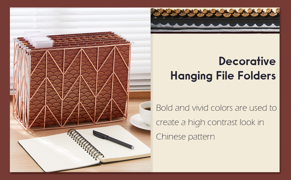 National Design - Chinese patterns use vivid colors to create a contrasting look, bold and vibrant. Decorative hanging file folder will bring fashion and a modern atmosphere to your desk, more luxurious and elegant