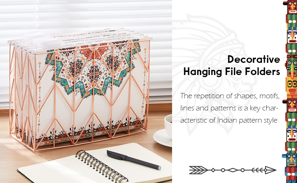 National Design - Indian patterns use complex shapes and overlapping motifs to create a captivating aesthetic. Decorative Hanging File Folder will bring fashion and a modern atmosphere to your desk, more luxurious and elegant