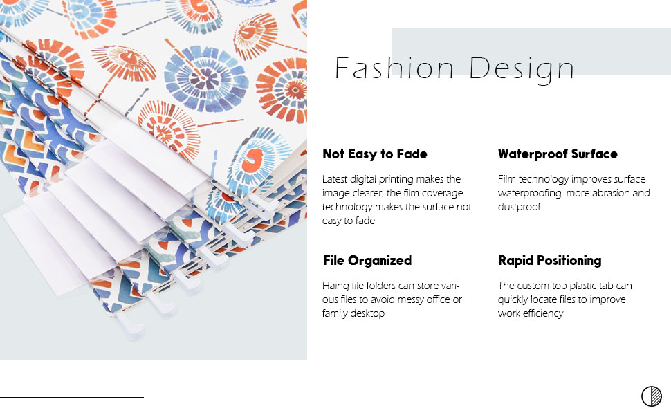 Premium Material - Cute hanging file folders are made of 250 GSM recycled paper. Surface membrane technology makes the digital printing pattern of pretty hanging folders not easy to fade, waterproof, and more wear-resistant
