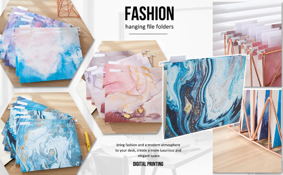 Decorative Folder - Unlike traditional file folder, our nebula design hanging file folder and tabs can match the desktop organizer, and bring fashion and a modern atmosphere to your desk, create a more luxurious and elegant space