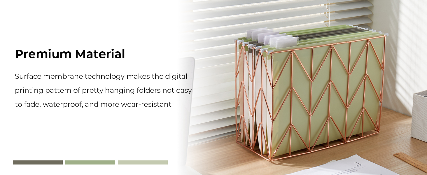 Premium Material - Cute hanging file folders are made of 250 GSM recycled paper. Surface membrane technology makes the digital printing pattern of pretty hanging folders not easy to fade, waterproof, and more wear-resistant