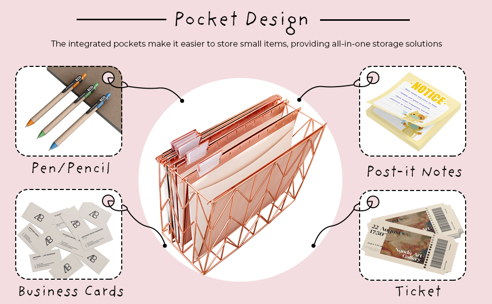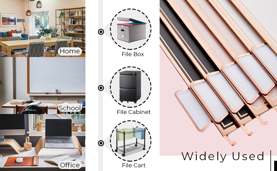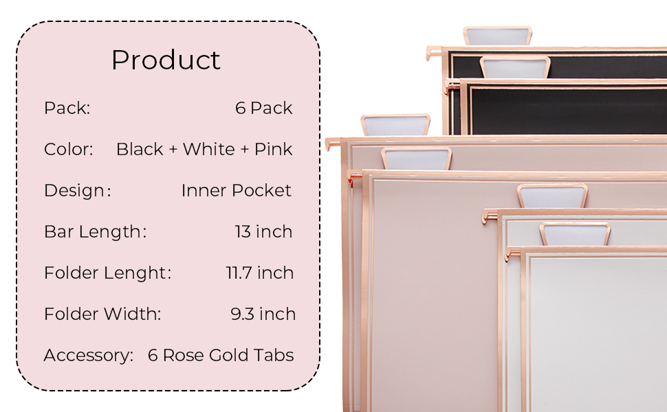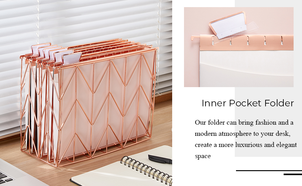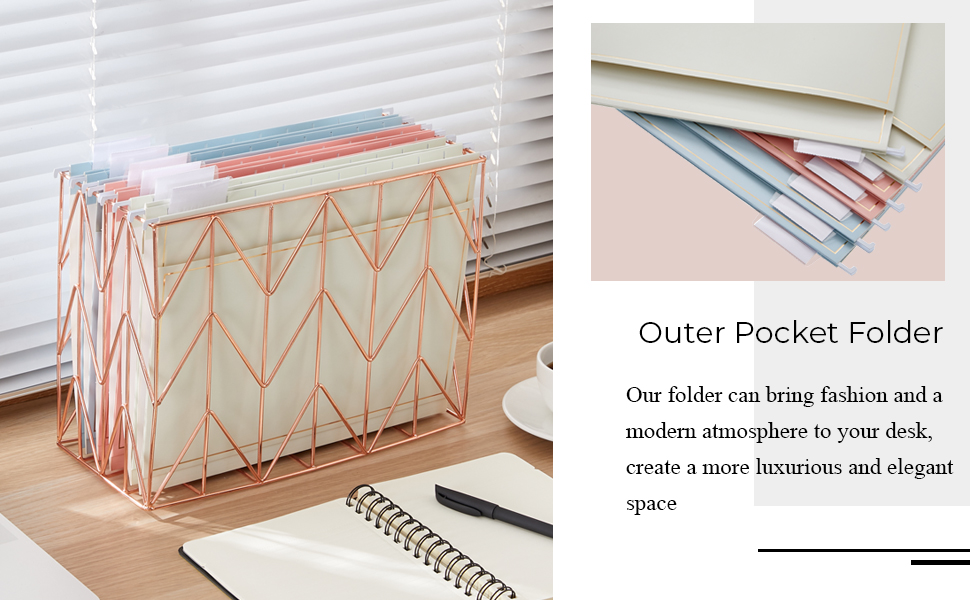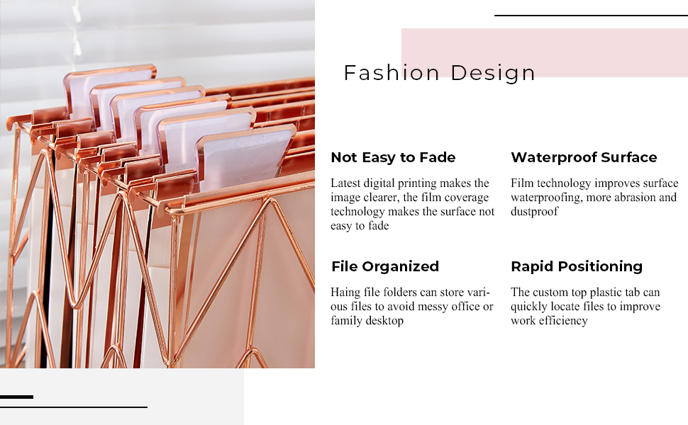 Gold Foil Design - Unlike traditional file folder, our rose gold hanging file folder and tabs can match the gold desk organizer, and bring fashion and a modern atmosphere to your desk, create a more luxurious and elegant space