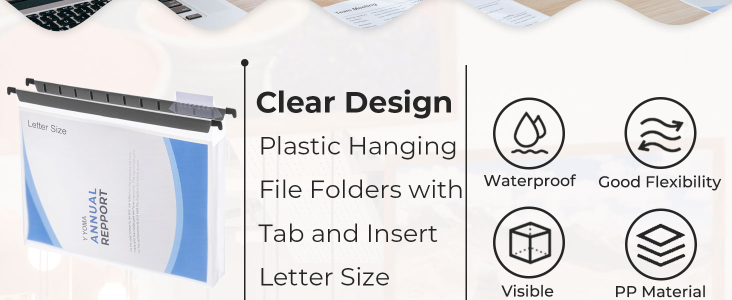 Y YOMA Plastic Extra Capacity Hanging File Folder, Letter Size, 2” Expansion, 6 Pack Clear Reinforced Expanding Hanging Folders with Tabs, Heavy Duty Waterproof Accordion for Bulky Files