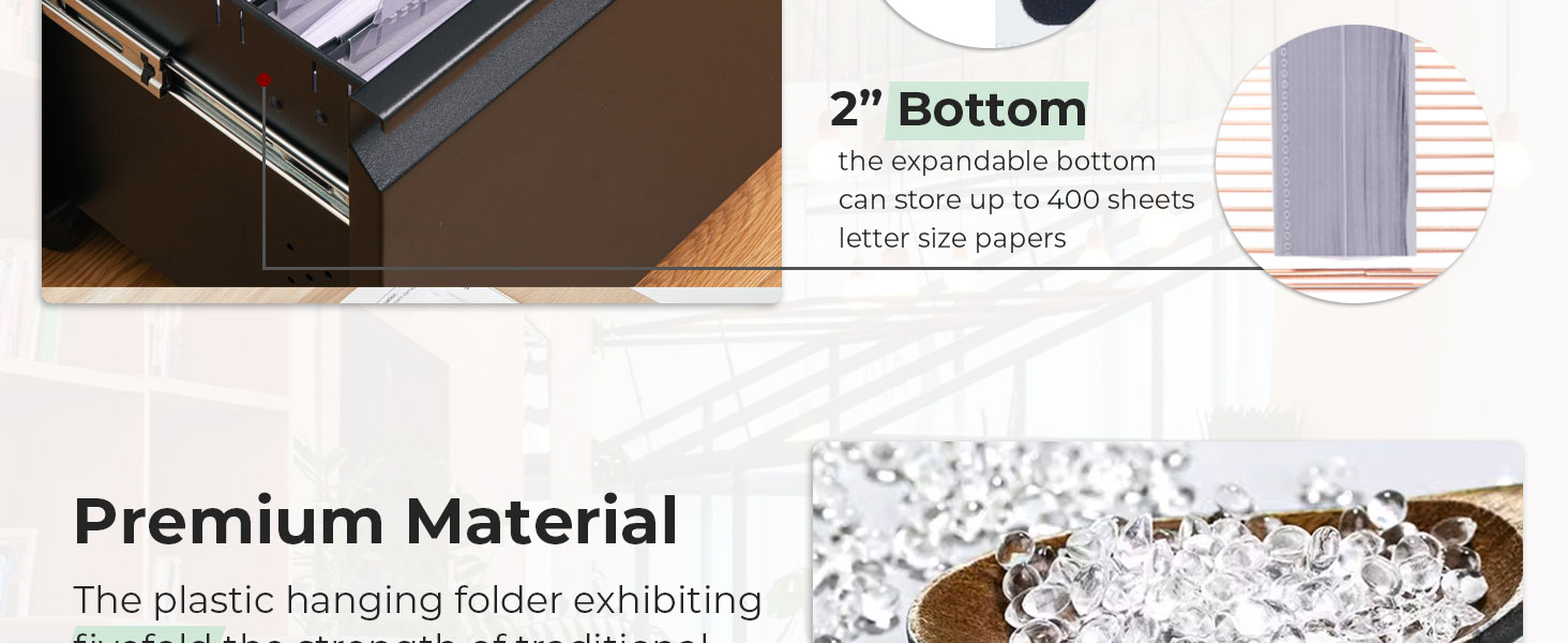 Large Capacity - This plastic hanging file folder expands up to 2” to hold up to 400 sheets, making it easy to store bulky medical records, legal documents, multi-page contracts, reports, and project files