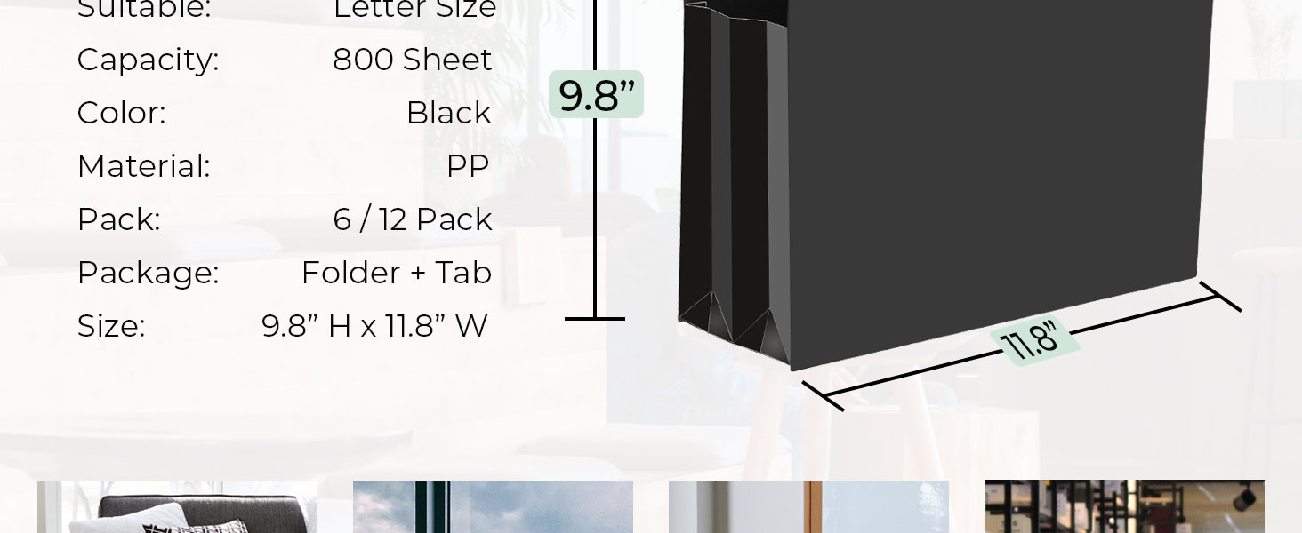 All Yours - You will receive black letter size hanging file folder x 6 + tab x 6. Each folder measures 9.8” H x 11.8" W. If you notice any missing accessories or damage, please contact me through Amazon so I can assist you promptly