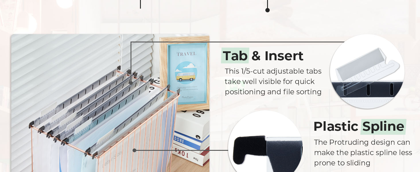 Filing Solution - The transparent design of poly hanging folder provides clear visibility of your documents for easy identification. The staggered 1/5-cut tabs along the top enable organized filing and quick access to your files