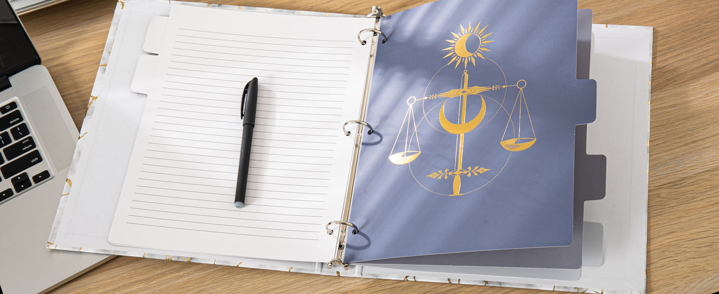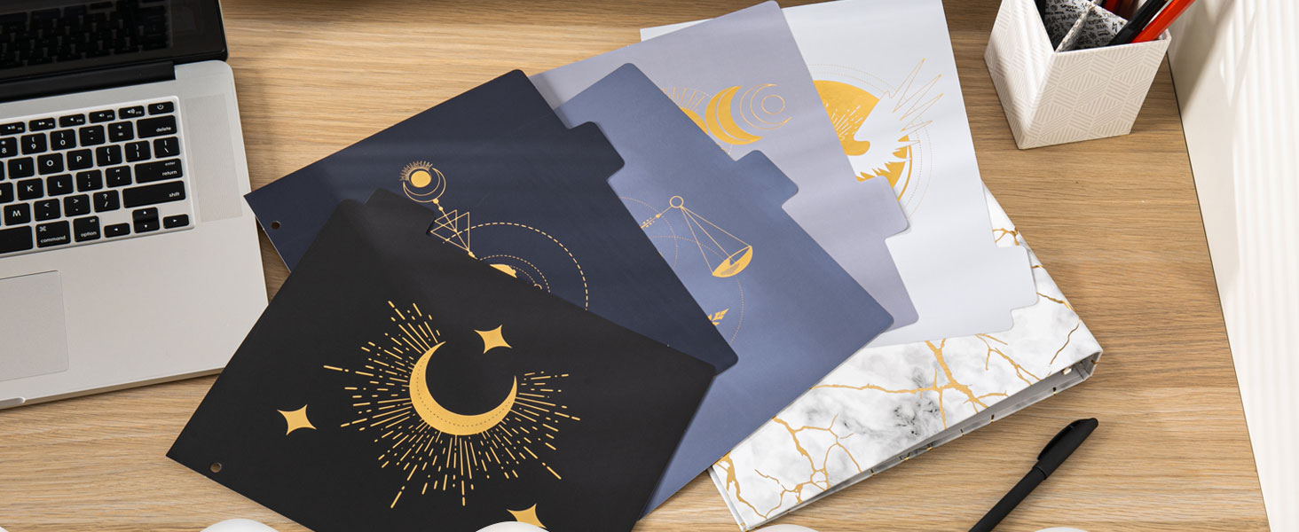 Gold Foil Design - Unlike traditional binder divider, our binder divider exudes an alluring dark aesthetic,carefully embellished through a meticulous hot-stamping process, capturing the essence of the arcane